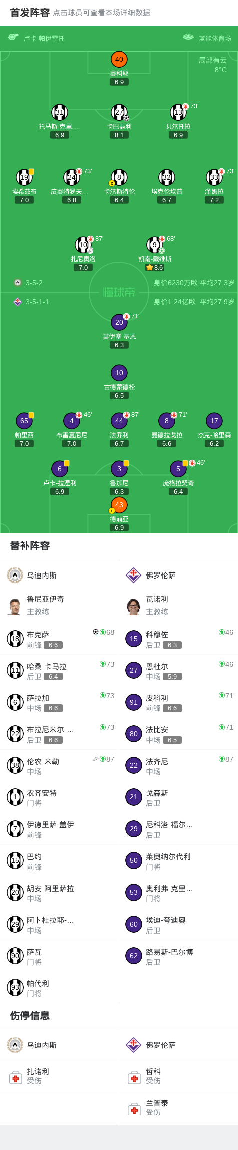 第10分钟,扎尼奥洛角球开到门前,卡巴瑟利头球破门,乌迪内斯1-0