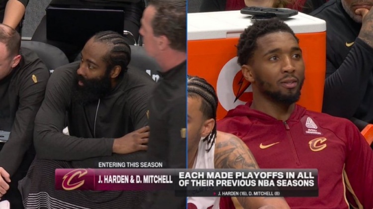 骑士VS独行侠,转播方晒出纪录:哈登和米切尔生涯每个赛季都打进了季后赛。
